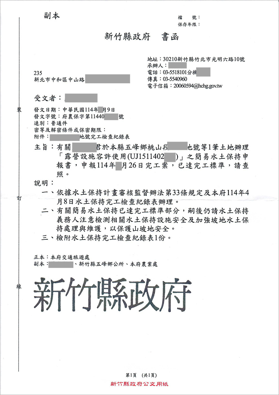 露營區的合法申請過程就像過五關斬六將,原本也以為非常困難,根本不可能過關。但是這2~3年的申辦經驗累績下來,漸漸掌握訣竅,一步一步來,按部就班逐步申請逐步改善,終會成功。目前已經幫20幾家露營區通過第一階段用許可的申請。手上正在申辦的30幾家露營區也將逐步通過!